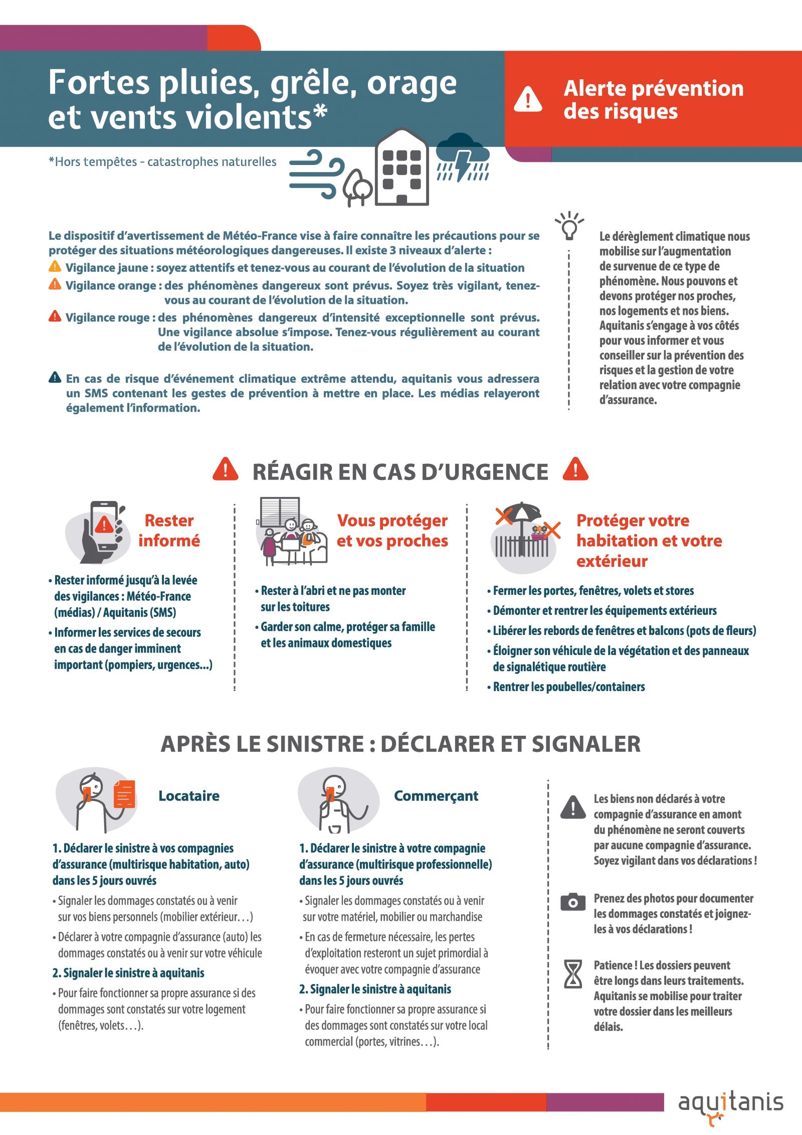 • Rester informé jusqu'à la levée des vigilances : Météo-France (médias) / Aquitanis (SMS)